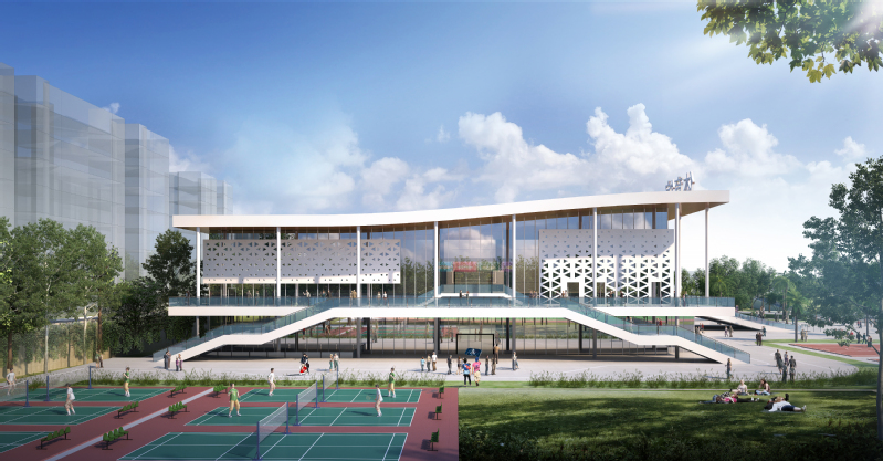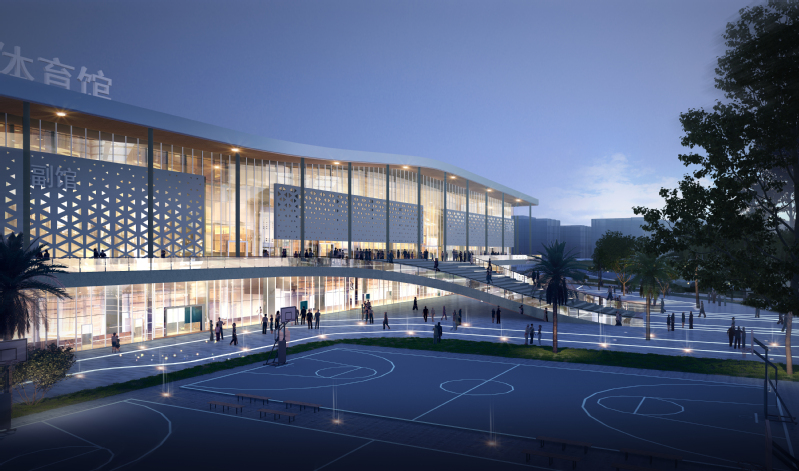项目位于广东财经大学佛山校区西侧,规划总建筑面积为20900平方米,其中:主馆建筑面积约9000平方米,地上2层,设计为中心多功能运动场地、看台、体育功能用房及辅助管理用房等;副馆建筑面积约4000平方米,地上2层,首层设计为综合训练馆,二层设计为羽毛球训练馆;地下1层人防停车库建筑面积约7900平方米。此外,还配套建设道路广场、景观绿化等室外工程。