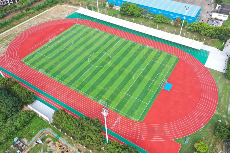 本次修缮项目位于佛山校区原田径运动场,修缮范围为足球场和田径场跑道,建筑面积约20000平方米。主要包括:铲除原运动场跑道塑胶面层、重新铺设沥青层及全塑型自结纹塑胶面层;铲除现有足球场天然草皮及基层土方,重新铺设基层及人造草皮(含弹性垫);新建足球场纵向两条竖沟及更换、加铺水沟盖板(含跑道及外明沟);增加4套运动场专用灯;翻新原上落楼梯;运动场外运部分地面硬化及其他配套设施等工程。