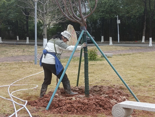 树木种植完成后,物业绿化人员第一时间开展定根、水浇灌管养工作。后续将持续跟踪樱花树生长状态,落实水肥管理、病虫害防治等举措,保障苗木成活率与长势。