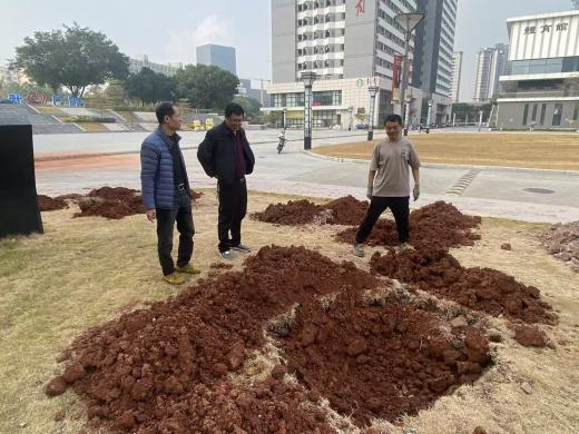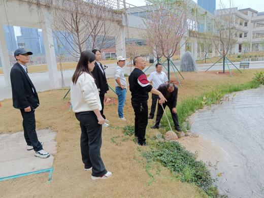 基建与后勤部工作人员带领知合物业人员提前对种植场地进行反复踏勘,结合土壤条件、光照情况及景观布局,明确挖坑规格、种植间距与树木排布方案,确保每一棵樱花树都能适配生长环境,兼顾景观协调性。