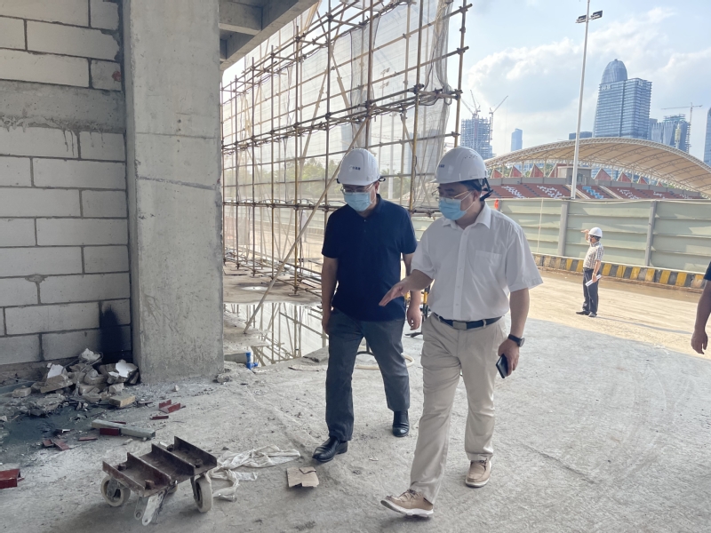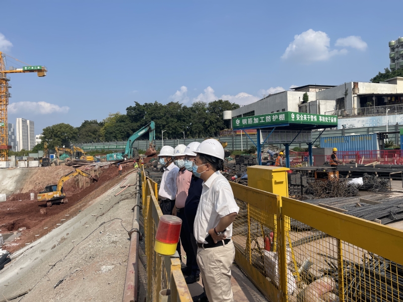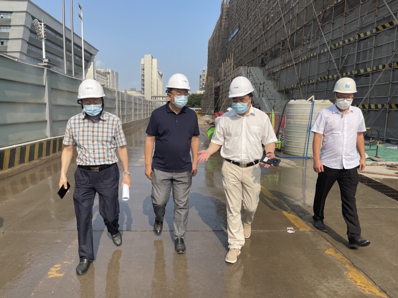 校领导深入工地一线检查指导工作 2022年4月11日下午,校党委书记郑贤操,校党委副书记、纪委书记陈树武,在基建处处长冯东海等相关人员的陪同下,深入广州校区第33栋学生宿舍、体育综合馆项目建设工地现场,检查指导在建项目施工情况,以及疫情防控和安全生产工作。 在工地现场,校领导听取了冯东海关于在建工程项目最新进度以及疫情常态化防控情况的汇报,经过不懈努力,各工程高质量推进,基建处将继续保持肯吃苦、肯负责的工作态度,提升安全质量意识,争取在建项目早日建成投入使用。 郑贤操在检查中提出了三点要求。一是当前广州本土及国内其他城市疫情形势严峻,施工单位务必时刻紧绷疫情防控之弦,组织工人按要求参加核酸检测,做到应检尽检,不漏一人,对施工人员严格执行日常扫码、测温工作,并建好疫情防控健康档案;二是要求项目现场要始终筑牢安全生产底线意识,把安全生产作为头等大事对待,进一步强化安全生产责任落实,做好施工现场安全隐患排查治理,切实做到全覆盖、零容忍,坚决堵住安全监管漏洞,防范安全突发事件发生;三是在管理上狠下功夫,要科学合理的安排施工进度,做到科学组织、统筹安排、精心施工,严格执行工程质量和进度管理,不断优化施工组织措施,确保在建项目高质量按期完成。