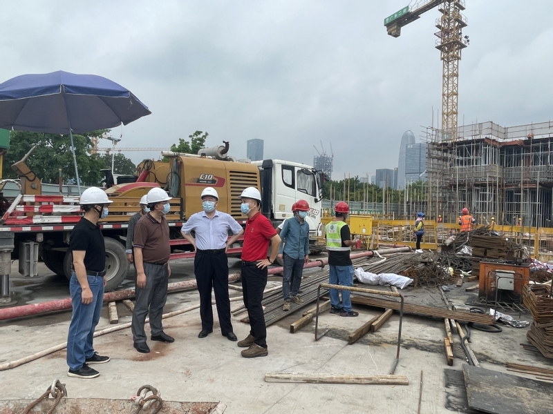2022年4月24日上午,副校长丁友刚到广州校区体育综合馆、第33栋学生宿舍项目建设工地,检查疫情防控和安全生产工作,基建处处长冯东海,基建处副处长方彤彤、梁智峰等相关人员陪同进行检查。 丁友刚深入工地一线,先后检查了体育综合馆、第33栋学生宿舍的项目建设进度、施工安全管理、疫情防控措施等相关工作。检查过程中,丁友刚听取了冯东海关于项目建设情况的工作汇报,并详细询问了当前施工阶段遇到的难点及和问题。 丁友刚对工程建设提出了明确要求。一是严格控制工程质量,加强施工进度管理,不断优化施工组织,确保体育综合馆和33栋学生宿舍高质量按期完成;二是切实履行安全生产责任,强化“红线”意识和“底线”思维,确保安全生产保障措施的落实;三是全力做好疫情防控工作,各参建方要继续强化责任意识,加强对现场管理人员、劳务人员的防疫管控和健康管理。