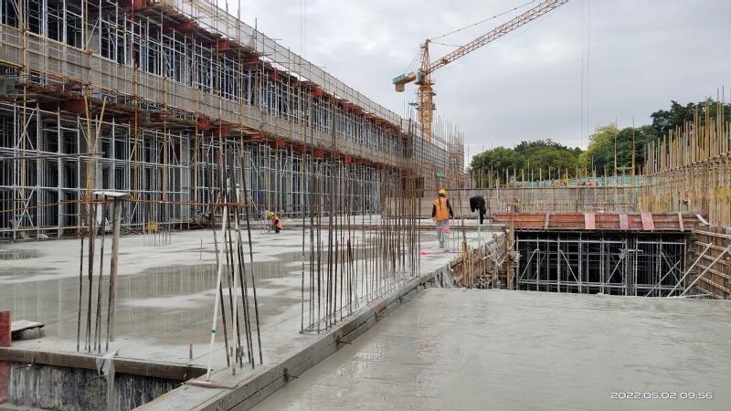 2022年5月1日,随着广州第33栋学生宿舍项目地下室顶板最后一方混凝土浇筑完毕,标志着该项目已经正式完成了基础工程、地下室主体结构工程关键节点施工,接下来施工重点将由地下部分转为地上部分,全面进入主体结构建设阶段。 该项目由基建处负责牵头实施,施工单位为广东省第二建筑工程有限公司,该项目总建筑面积约51300平方米,其中地下1层,裙楼2层,东塔16层,西塔19层,主要包括学生食堂、学生公寓、地下车库、周边道路及景观绿化等配套工程。2021年11月正式开工建设,计划2023年4月完成主体结构工程,2023年8月整体建成投入使用。该项目建设完成后为广州校区新增约3600个学生床位,新增食堂面积11000平方米,将进一步改善学校办学条件,为建成大湾区一流财经大学提供更好的硬件支持。