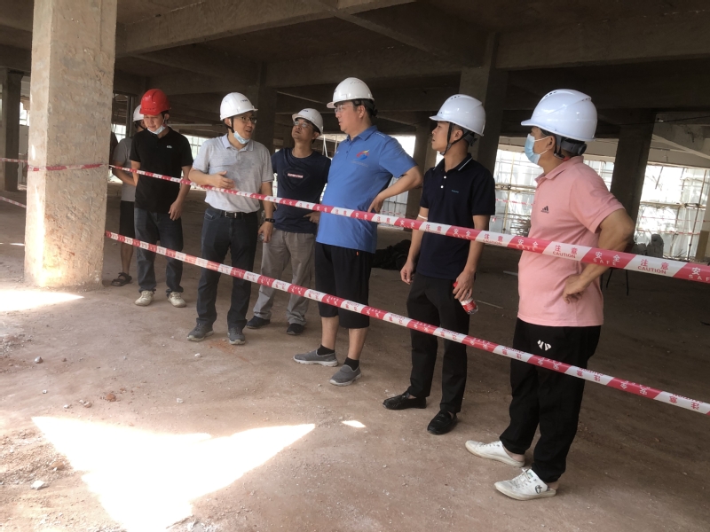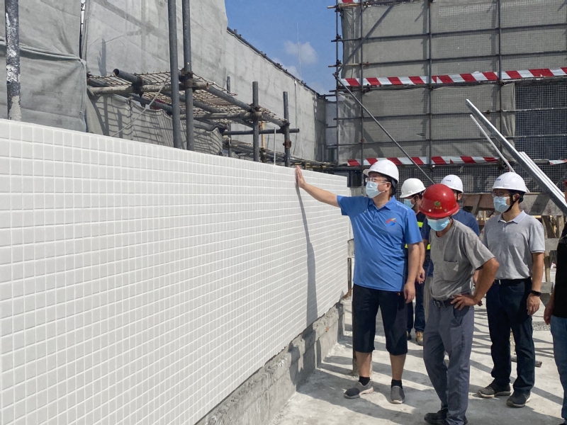 10月3日上午,副校长丁友刚深入广州校区在建项目工地,检查工程质量、项目进度、施工安全、防疫安全等情况。基建处副处长梁智峰等相关人员陪同检查。 丁友刚先后检查了第33栋学生宿舍项目、产教融合综合实验实训中心项目、南区图书馆改造项目,详细听取了各项目施工单位负责人关于工程进度、质量控制、安全生产等方面的情况汇报。 在第33栋学生宿舍项目2号楼屋面,丁友刚重点检查了屋面女儿墙贴砖的施工情况,看到施工现场瓷砖表面平整、线条顺直、接缝填嵌密实,丁友刚对施工质量予以肯定,同时要求各参建方要继续抓好施工质量管理不放松,努力打造精品工程。 在产教融合综合实验实训中心项目,丁友刚重点检查了校门、围墙、广场及周边景观道路的施工情况,并对后续的配套施工提出指导意见。 在南区图书馆改造项目,丁友刚重点查看了项目的现场管理和工程进度情况,并要求各参建方要在保证施工质量和施工安全的前提下,继续加强项目进度管理,确保项目如期交付。 丁友刚对各参建单位提出要求:第一、严把工程质量关,落实监管责任,精心组织后续施工。第二、强化施工安全关,确保安全保障措施到位,加强疫情防控管理。第三、优化进度控制关,科学合理进行施工组织安排,确保各项目如期完工交付。