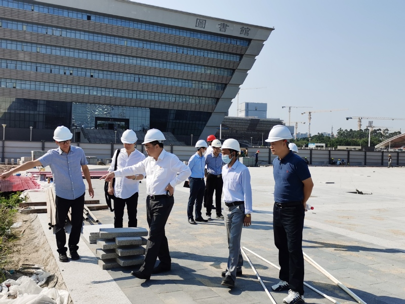 10月27日上午,校党委郑贤操书记、罗贤甲副书记带队深入“产教融合”项目现场,检查北校门广场及周边道路建设情况、施工安全、工程质量,指导北门广场绿化种植方案、周边环境提升方案。后勤处处长胡卫标,艺术与设计学院副院长王少斌,基建处副处长方彤彤、梁智峰等相关工作人员陪同检查。 郑贤操、罗贤甲先后检查了“产教融合”项目周边围墙、人行道路、综合市政管线、北校门广场、绿化方案建设情况,听取了工程进度、工程质量、安全生产措施落实等方面的情况介绍,重点督导了北校门广场园林绿化方案、周边环境提升方案、北校门“运梁通道”升级改造方案、“产教融合”项目投入使用后的门岗管理等。郑贤操对校园环境优化提出指导意见,要求工程单位做好项目配套建设,进一步提升我校建设大湾区一流财经大学的文化内涵,进一步改善校园整体景观形象,加快推进广州校区校园空间规划优化及环境整体提升工程,为建校四十周年献礼。