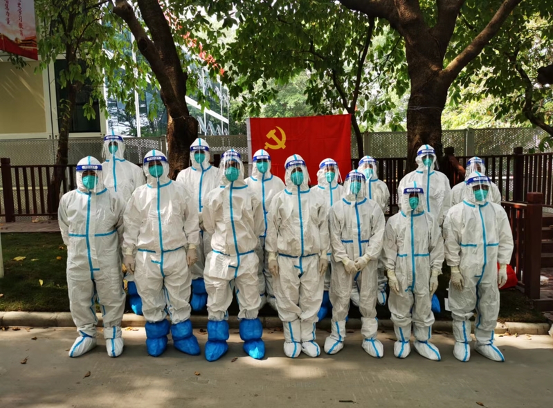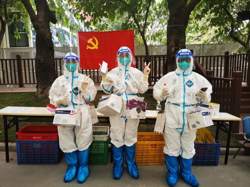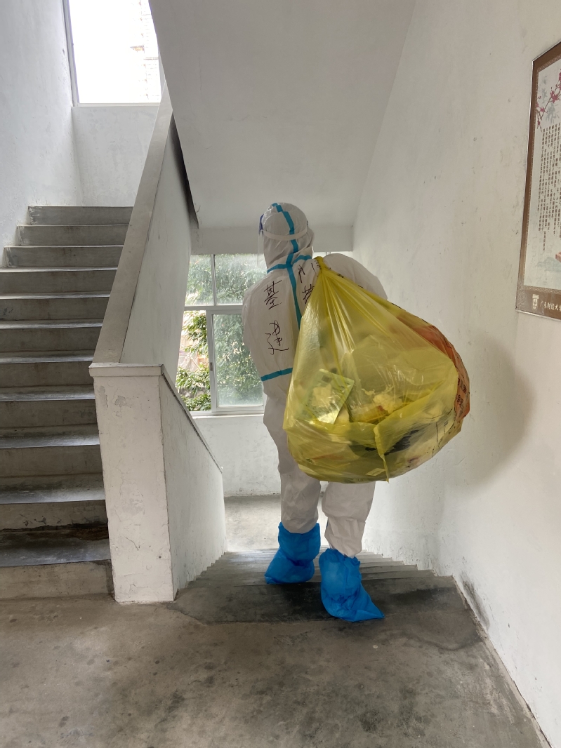 11月10日以来,学校面临了新冠肺炎疫情发生以来最复杂最严峻的形势,在校党委的紧急动员下,基建处党支部火速响应,闻令而动,支部委员全员带头返校,积极投身防疫第一线。结合部门业务特点,基建处迅速组建了一支以支部党员为基础,统筹第33栋学生宿舍、体育综合馆、南区图书馆在建项目施工管理骨干的基建抗疫突击队。突击队的建立既发挥了党支部的战斗堡垒作用和党员的先锋模范作用,又利用了业务单位战斗力强、指挥顺畅的优势,为连续高强度抗疫工作打下坚实基础。 (基建处党支部队员合影) (项目部队员合影) 不畏艰险,勇挑重任。在学校物资、人手紧缺的困难情况下,基建抗疫突击队迎难而上,主动提出承包最辛苦的“差事”----没有电梯的高风险封控宿舍,先后承担了第27栋、第21栋学生宿舍的抗疫服务工作。八层楼梯楼,志愿者上门服务难度大,物业人手短缺,存在垃圾处理不及时的问题。为了更加高效便捷的为学生提供服务,处领导靠前指挥,突击队员们不畏艰险,身兼数职,默契配合,包揽了从运送餐食、发放餐食、协助核酸检测到清运生活垃圾“一条龙”抗疫任务,有条不紊地开展各项工作,既节约了人力资源,也提高了管理效率,切实保障了学生的生活所需。 (队员运餐) 队员送餐) (队员清运垃圾) (核酸小分队合影) 全心投入,方显勇毅。日复一日的穿脱防护服、爬楼送饭、清运垃圾、检测核酸,每日的志愿服务总时长远远超过8小时,队员们充分发挥特别能吃苦、特别能战斗、特别能奉献的精神,上下一心,协调有序,高效运转,用严谨认真精细的态度熟练完成每一步规定动作。队员中有的需要克服腰痛的困扰,休息一会后就再次选择冲上战场;有的奋战至夜幕降临,拖着疲惫的身体回到办公室处理白天留下的工作直至深夜;有的为了不让汗水阻挡视线,影响工作效率,自己提前叠好厚厚的卫生纸夹在额头和防护帽之间......队员们用一点一滴、实实在在的行动和付出确保各项任务顺利完成,奋勇争当“红色先锋”。 (脱下手套的双手) (脱下防护服的队员) 巧思妙招,精准服务。在完成每日工作后,队员们都会进行复盘,交流心得,碰撞出更好服务学生的金点子、小妙招。例如为了给送餐、核酸检测提供更准确的人员数据,队员提前上门摸查人数,将宿舍人数信息张贴在门口。为了减轻队员的送餐负担,突击队发挥专业优势,在顶层安装滑轮,利用滑轮为高层学生送餐和物资。“滑轮送餐”经过反复调试和确认,安全性得到有效保障,逐步推广到其他楼栋,志愿者们都纷纷表示:“滑轮送餐省时省力,可以减少不必要的损耗,留下力气,干更多的活。”特殊的送餐方式同样得到了学生们的关注和好评,纷纷拍下小视频,让滑轮成为了新进“网红”,通过送餐的“高科技狠活”,让学生感受到志愿者们切切实实的关爱,也为枯燥的隔离生活带来了乐趣。 (队员上门摸查人数) (队员滑轮送餐) (学生拍摄的小视频) (学生拍摄的小视频) 凛冬已至,春华可期。截至今日,基建抗疫突击队已连续奋战17天,期间没有一人请假、缺岗、退缩。面对疫情“大考”,基建处党支部“疫”无反顾,用担当诠释忠诚,“疫”不容辞,用守望践行初心,“疫”然前行,用奋斗驱散阴霾,坚决守牢疫情防控阵地,竭尽全力守护全校师生生命安全!